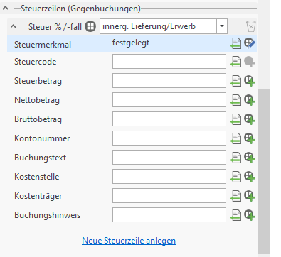 Klick auf Neue Steuerzeile anlegen
