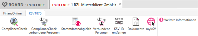 In den Personen-/Firmenstammdaten unter Risiko-Check oder mit geöffnetem Klienten im Register Portale können Sie mittels der KSV1870 Anbindung einen ComplianceCheck durchführen. Der ComplianceCheck ist ebenfalls Bestandteil eines StammdatenReports und steht für Unternehmen und damit verbundene Personen (nicht aber reine Privatpersonen ohne Unternehmensbezug) zur Verfügung. Im Rahmen der Compliance-Prüfung wird erhoben, ob es sich bei Ihren Geschäftspartnern um politisch exponierte Personen (PEP), nahestehende Bekannte bzw. Verwandte (RCA) oder um Personen bzw. Firmen handelt, die auf einer Liste für Sanktionen, Finanz- und Steuerdelikte, Terror und Korruption (SIE/SIP) stehen. Der ComplianceCheck kann wiederum auch automatisch als Risiko-Check angelegt werden. Dies gilt ebenfalls für die verbundenen Personen.