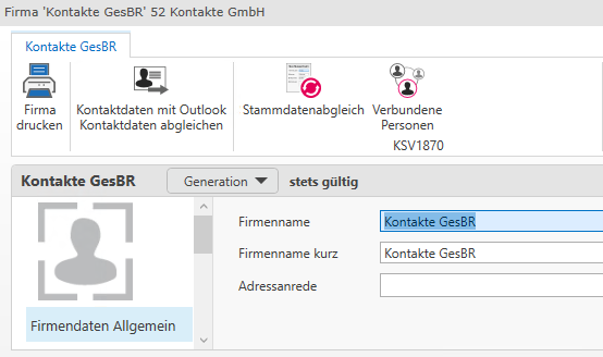 Diese Funktion steht Ihnen entweder in den Personen-/Firmenstammdaten Allgemein zur Verfügung