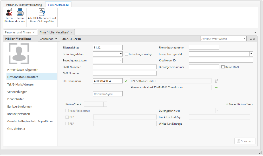 Personen-/Firmenstammdaten - Risiko-Check