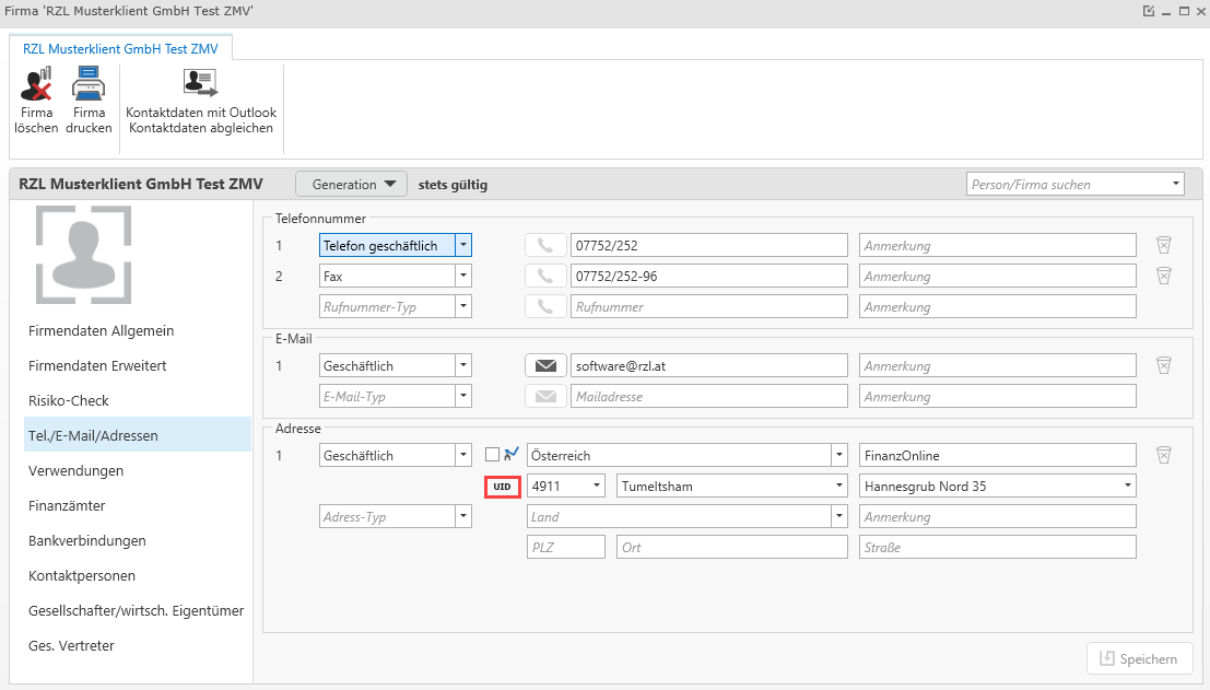 UID Nummern Überprüfung in Personen-/Firmenstammdaten