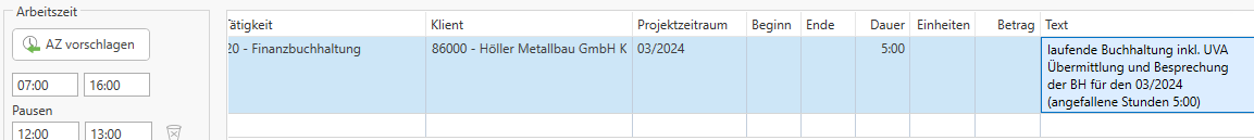 Über die persönlichen Textbausteine haben Sie in der Leistungserfassung die Möglichkeit, vorgefertigte Texte anzulegen und diese im Zuge der Leistungserfassung zu nutzen.