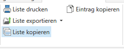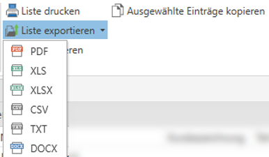 Über den Punkt Liste exportieren im Register Arbeitszeitkalender oder im Register Leistungen können die erfassten Leistungen oder Arbeitszeiten in folgenden Formaten exportiert werden: