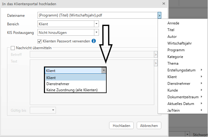 Dokumente in das Klientenportal hochladen